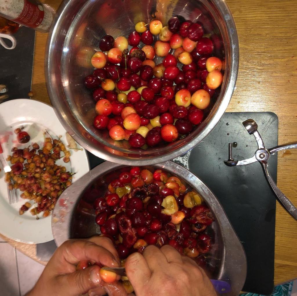 Préparation de confiture maison à la cerise pour nos hôtes ![]()